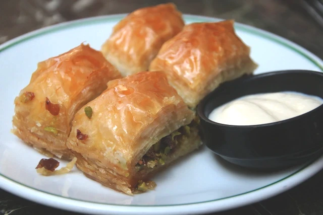 Tüm yufkalar yerleştirildikten sonra baklavayı keskin bir bıçakla kare ya da baklava dilimi şeklinde kesin. Bu işlem, hamuru pişirdikten sonra dağılmasını engeller.